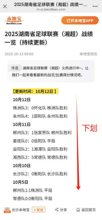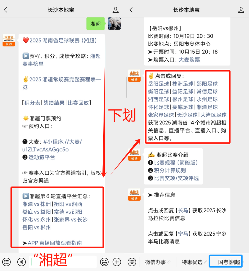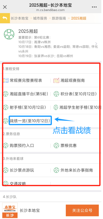 小编在这里要给大家推荐一个好工具,那就是咱们长沙本地宝的微信办事“湘超”专题。小编们都在随时跟进。